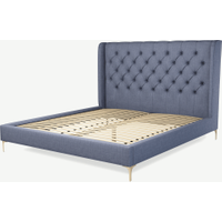 Romare Super King size Bed, Denim Cotton with Brass Legs